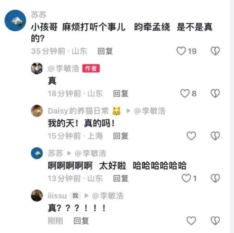來看看,小孩哥兩次都回應表示「昀牽孟繞」是真的👇