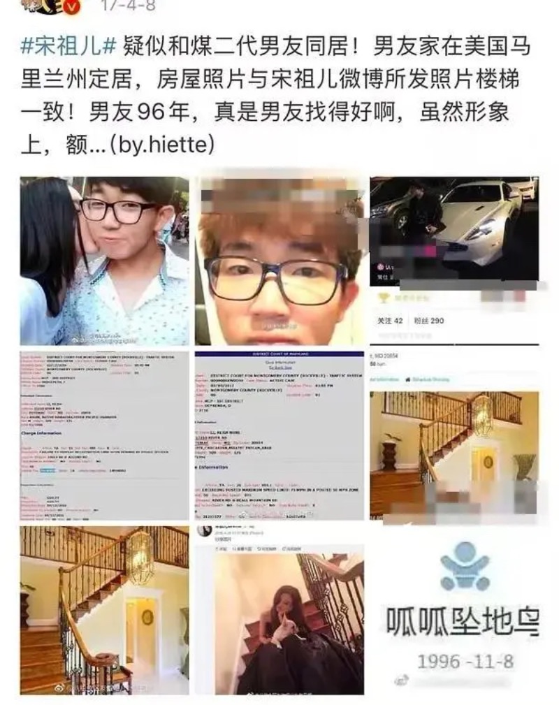 根據網友扒出,宋祖兒曾疑似與某任煤二代男友在美國同居,兩人有同款豪宅背景,還有宋祖兒親吻男友的照片。