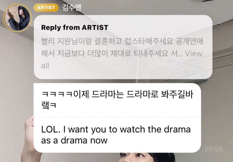 這留言真的太⋯直接了啦!更沒想到是,金秀賢居然翻牌回覆,表示:「ㅋㅋㅋㅋ希望大家電視劇就當作電視劇來看吧!」
