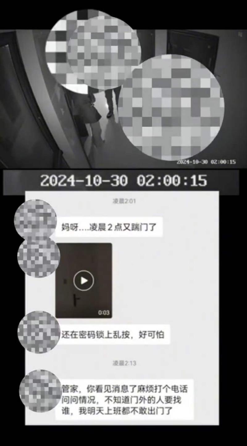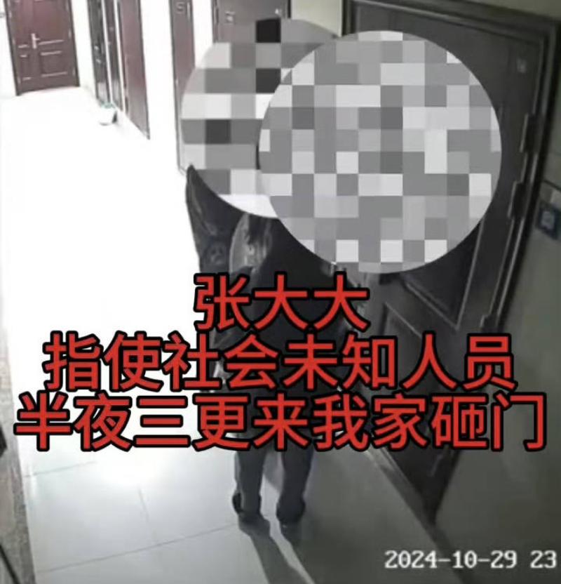 隨後,黃毛毛再曝光監控視頻,表示張大大找「社會人士」三更半夜去砸她的房門,在密碼鎖上亂按,讓她有家不能回,鄰居都害怕,最後導致房東把她趕走。