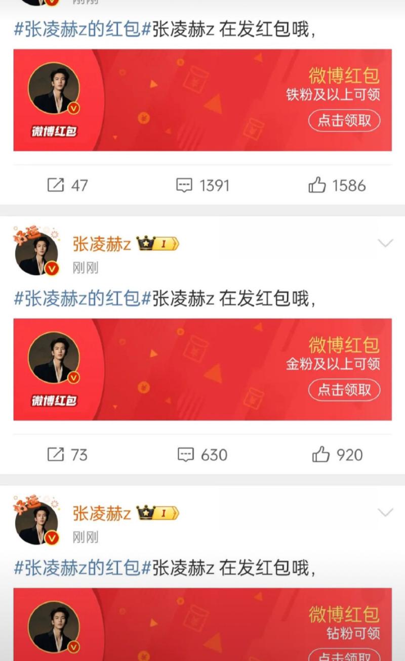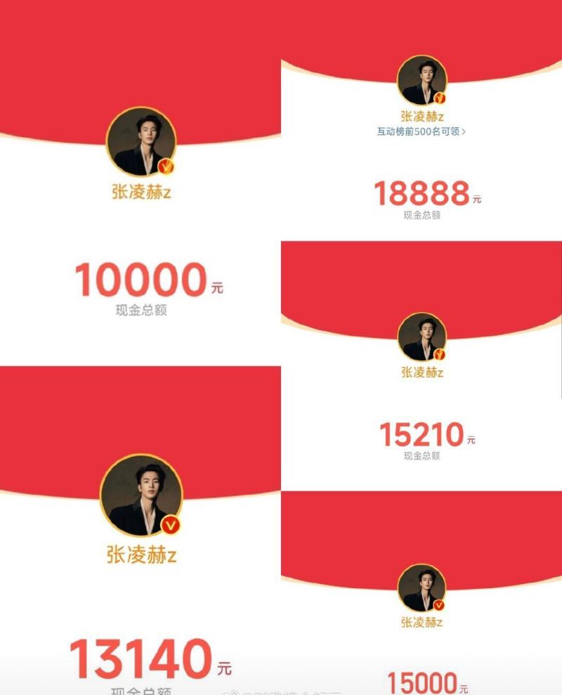 對比之下,張凌赫雖然也派紅包,但結果卻完全不一樣!!!來看看,和陳哲遠一樣,張凌赫也派了好幾次紅包,數額加起來也快10萬了!