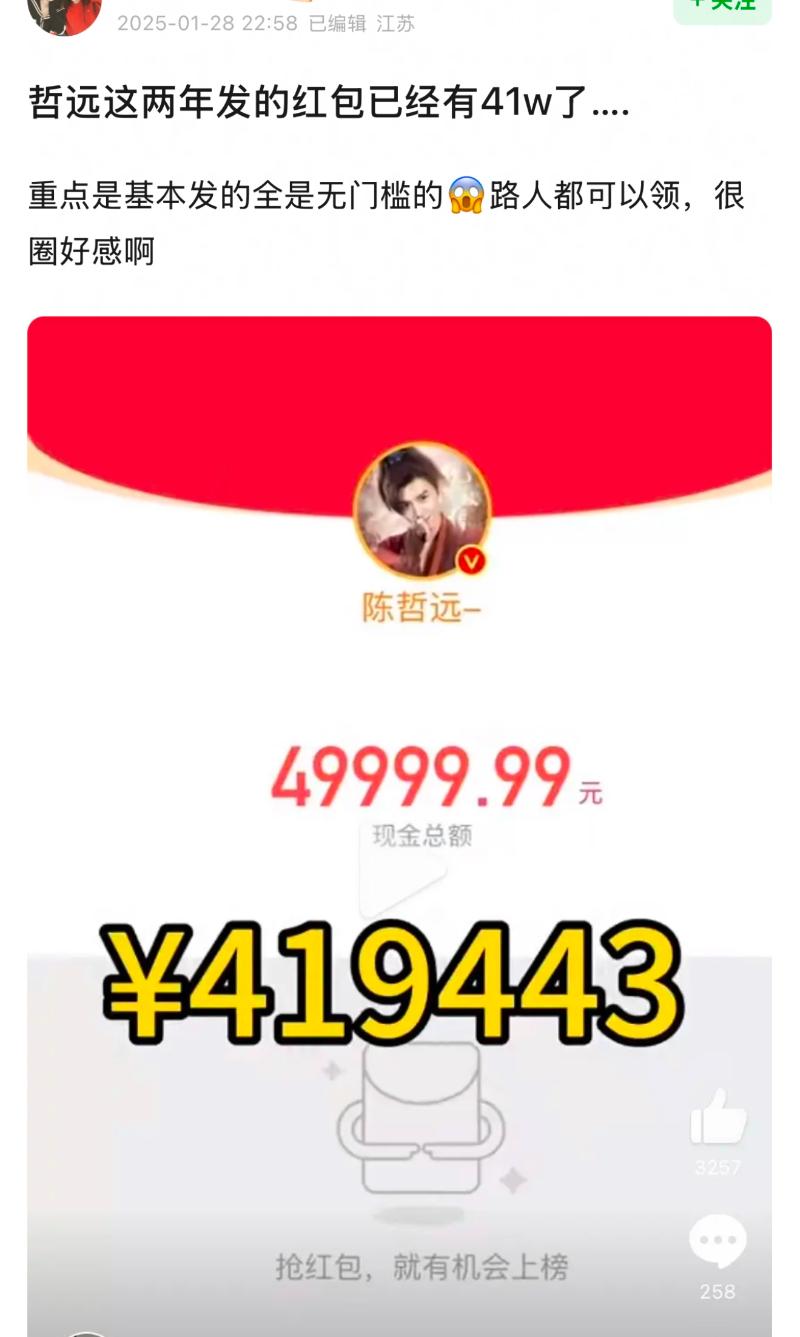 好慘!陳哲遠發紅包一夜漲粉350萬人!張凌赫發紅包「一舉動」被嘲不如不發!