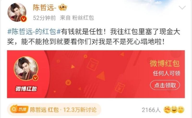 媽啊~發紅包怎麼還被罵了啊?是噠,適逢過年,不少藝人紛紛通過微博派紅包,當中被稱為「微博小財神」陳哲遠,一口氣派了15萬(人民幣,下同),直接搞崩了微博👇