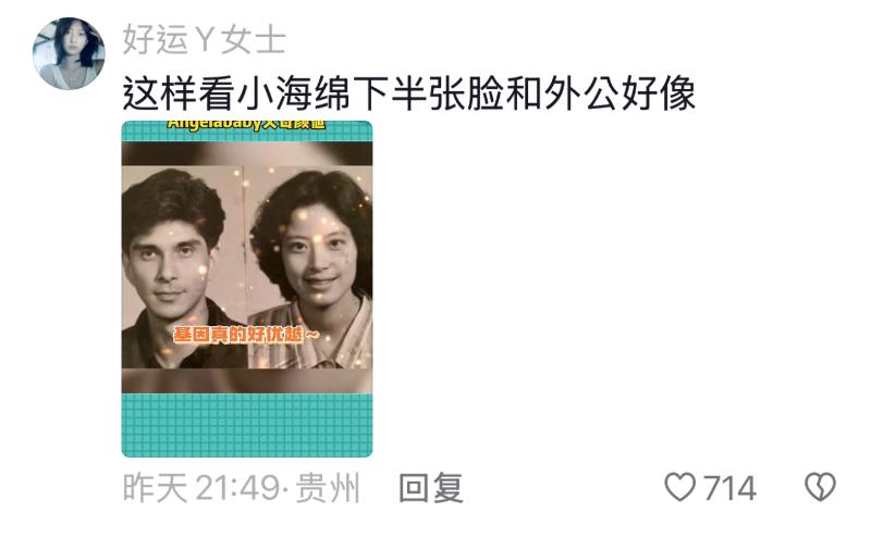 合照公開之後,就有網友表示小海綿五官長得和外公一模一樣啊!