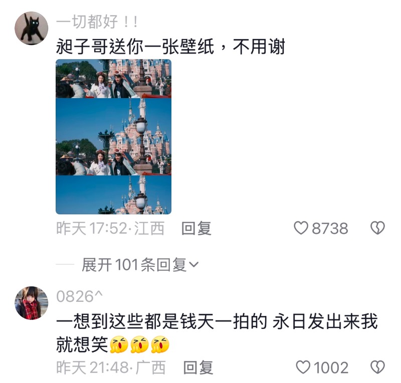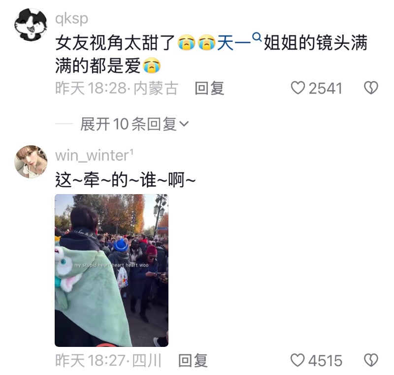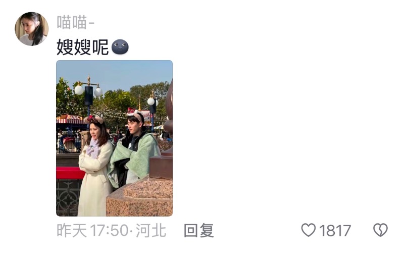 之前在迪斯尼樂園約會還被偶遇,接著網友紛紛分享自己曾偶遇的兩人,比如下面這張甜到爆的👇