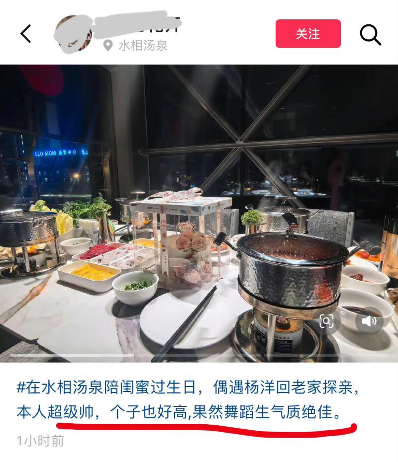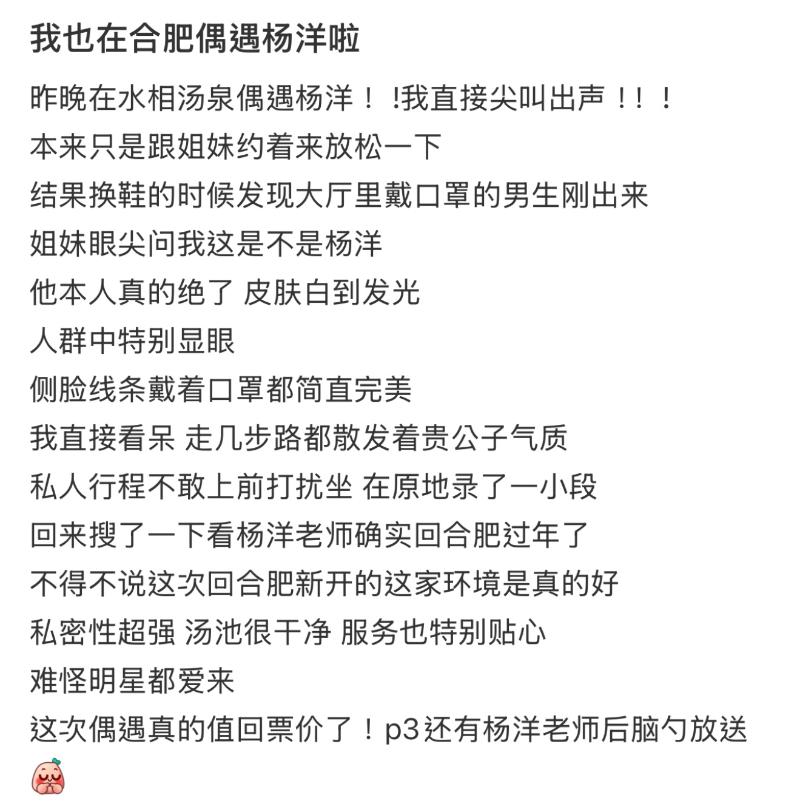 這次適逢春節,在上海出生的楊洋也回了老家安徽合肥,而且處處被偶遇!先是有網友在合肥出名的湯泉酒店偶遇他,表示本人超級帥,個子也很高,舞蹈生氣質絕佳!