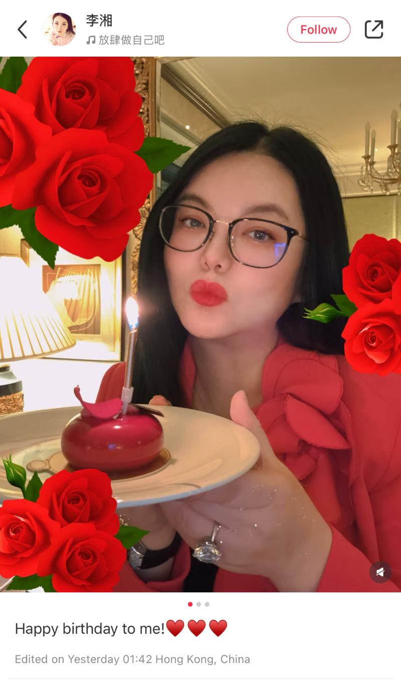 隨後,李湘在社交平台發文為自己慶祝,並公開了自己寶貝王詩齡發給自己的生日禮物!