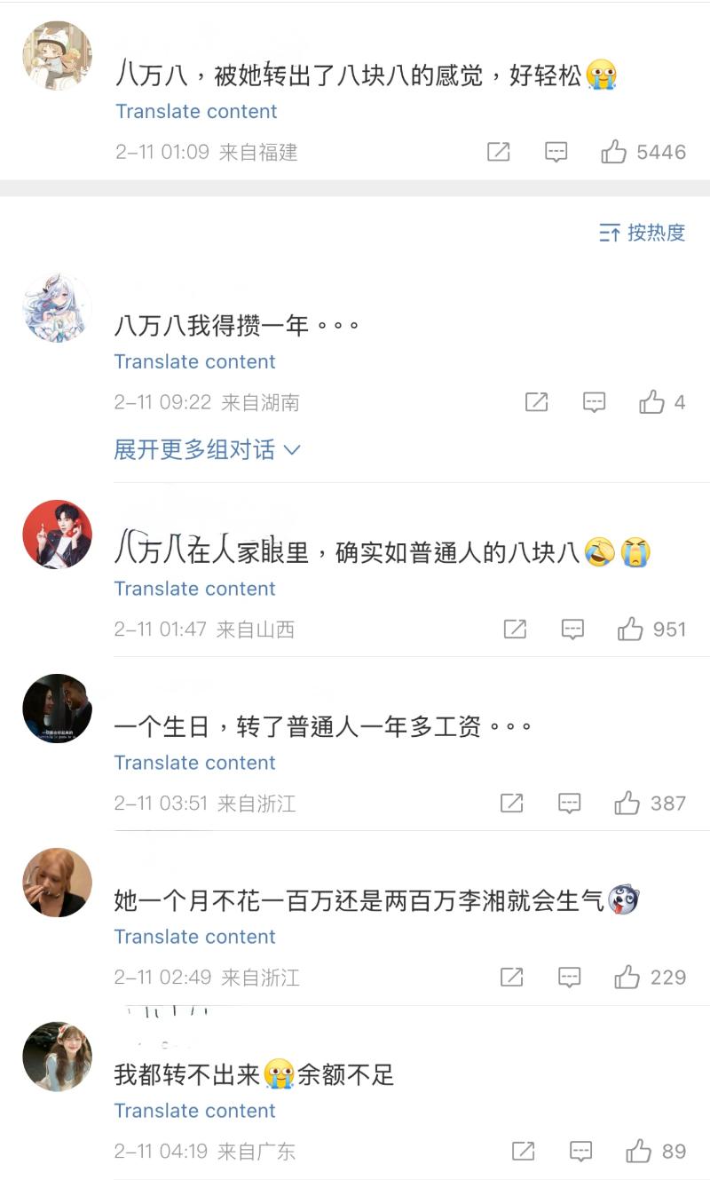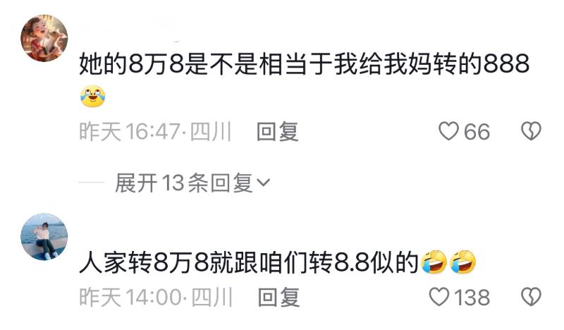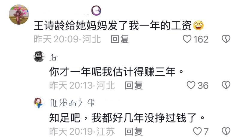 是噠,王詩齡轉了88888(人民幣,下同)給媽媽當生日禮物~