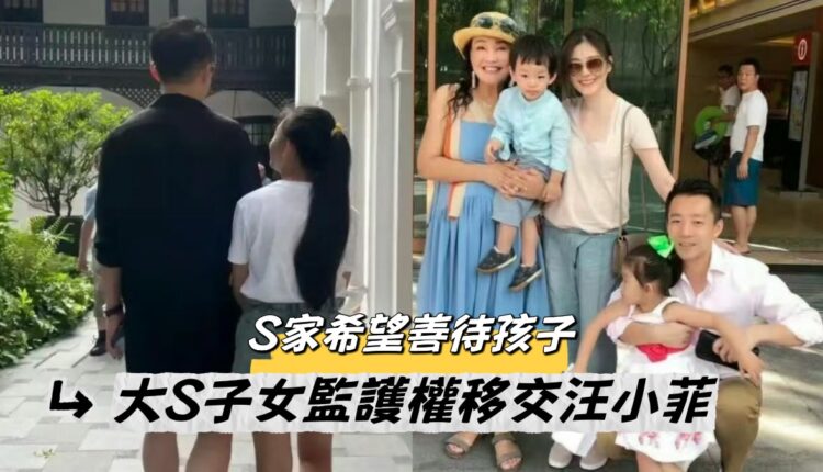 根據台媒最新報導,其子女的監護權將依法移交給前夫汪小菲。儘管大S已再婚,但由於現任丈夫具俊曄並未正式收養兩個孩子,法律上他與孩子僅為姻親關係,因此親權仍由汪小菲行使。