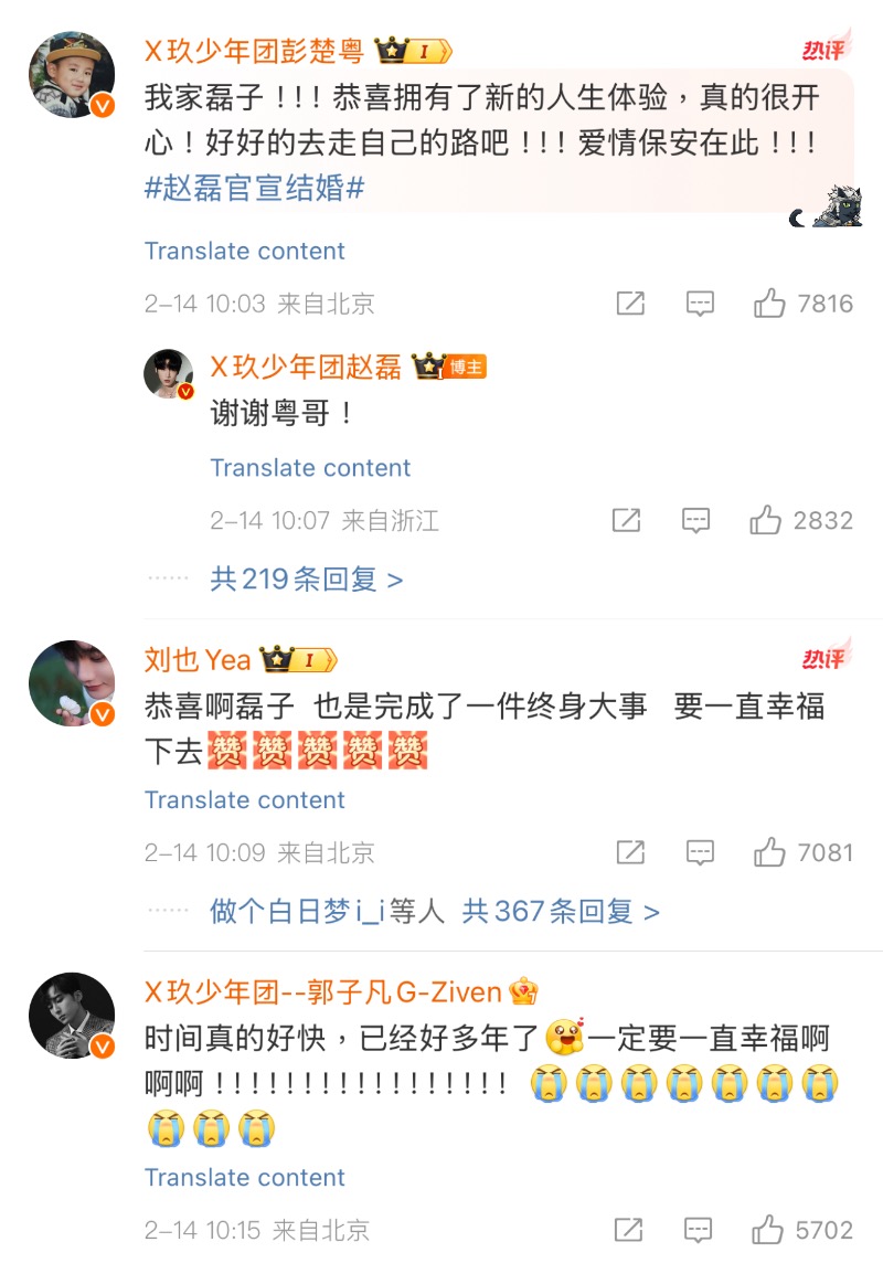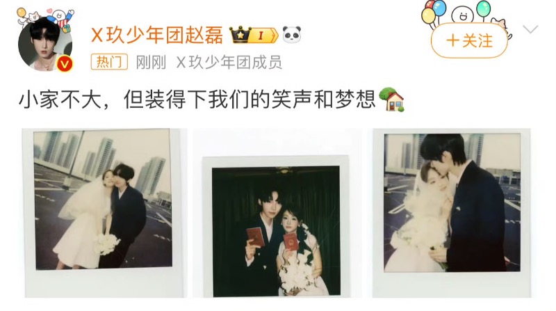 媽啊!真的是認愛就炸了微博啊!是達,X玖少年團成員趙磊在情人節這天官宣⋯結婚!