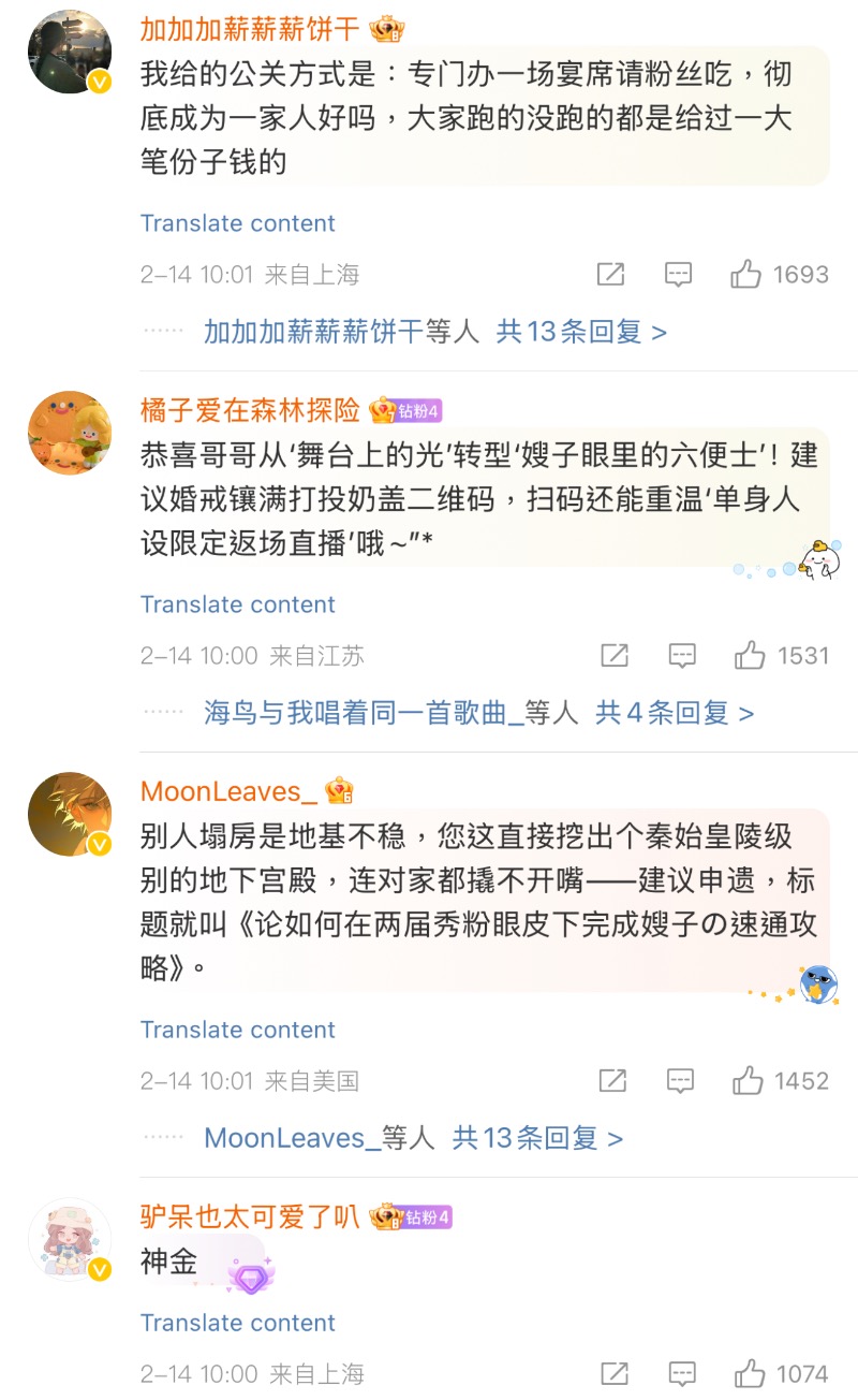 官宣微博下有不少X玖成員和藝人留言👇