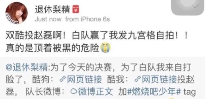 2. 16年 趙磊還在參加《燃燒吧少年》時qko就已經是他的粉絲了,還用大號趙磊拉票,去活動現場應援,合影。