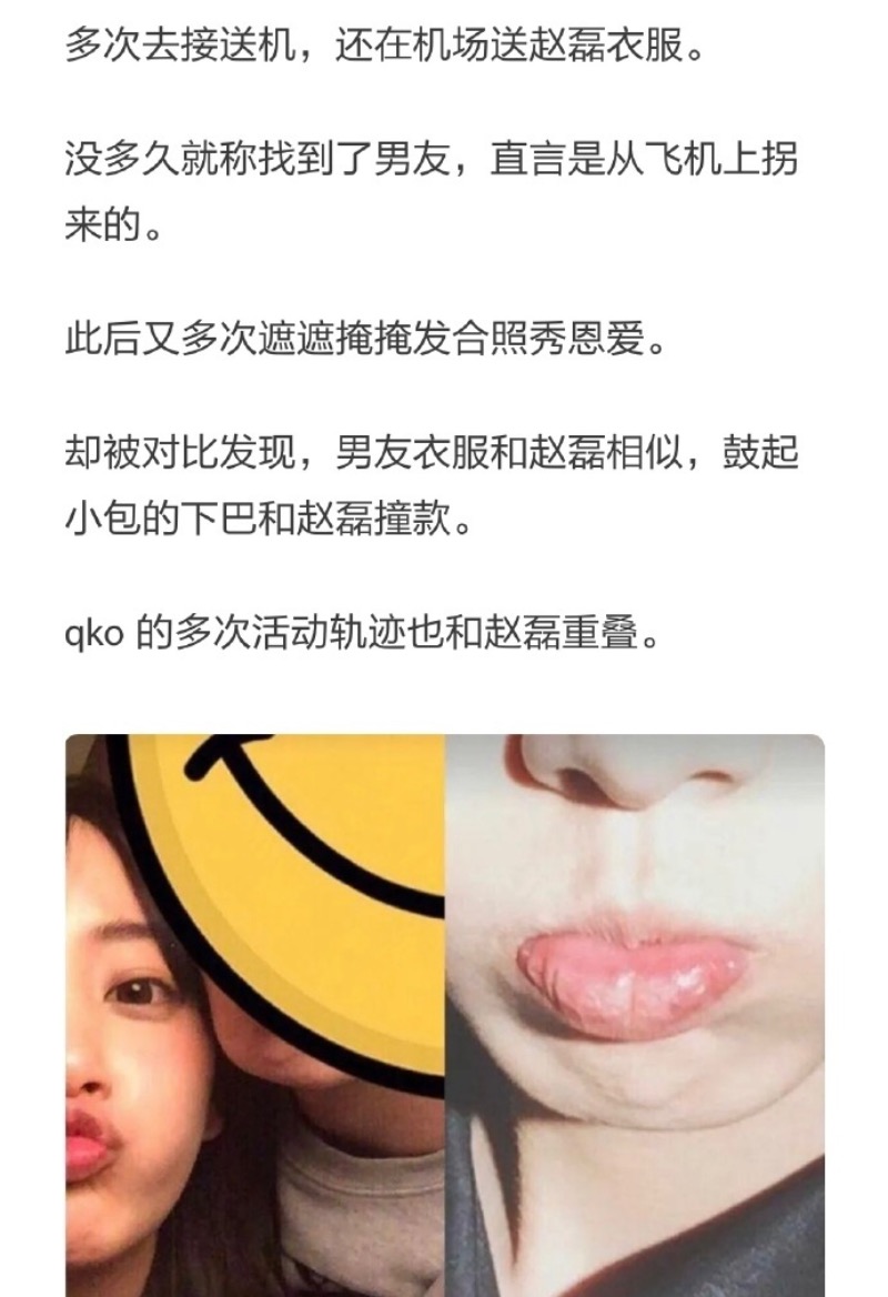 據悉qko是在飛機上和趙磊加上微信的,當時女生20歲 男生16歲。後來qko說自己找到了男友是在飛機上拐來的,被粉絲扒出該「男友」疑似是趙磊👇