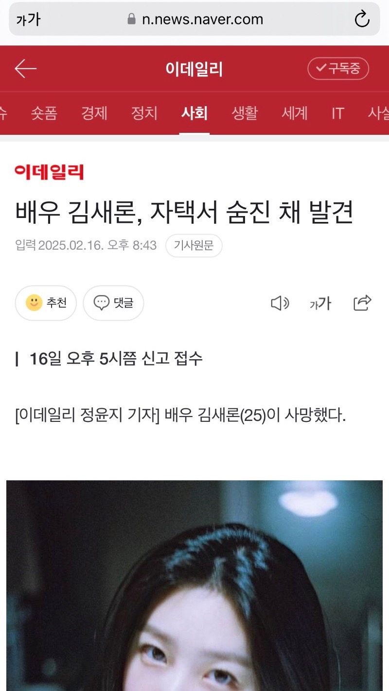 快訊!年僅25歲!韓星金賽綸被發現在家中去世!