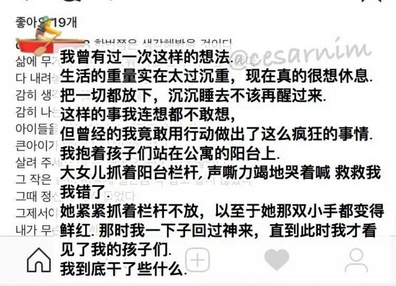 金賽綸媽媽曾發過長文,透露自己曾經想帶著3個孩子自殺,當時大女兒已經被丟下樓了,但是因為金賽綸緊緊捉著欄杆才回過神,救下了自己和兩個妹妹。