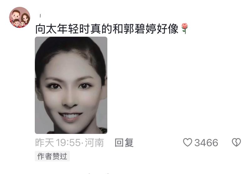 網友留言表示真的很像郭碧婷,還得到向太點贊👇