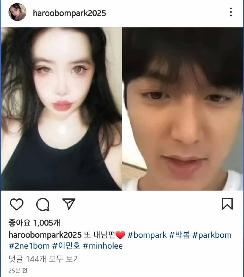 最初發生在24年9月,朴春發佈了一張和李敏鎬的拼貼圖,並寫下「真心的丈夫♥」,當時引來了「自曝戀情」爭議。經紀公司隨後回應,表示她因為剛看完《繼承者》,因此這是屬於粉絲的愛~