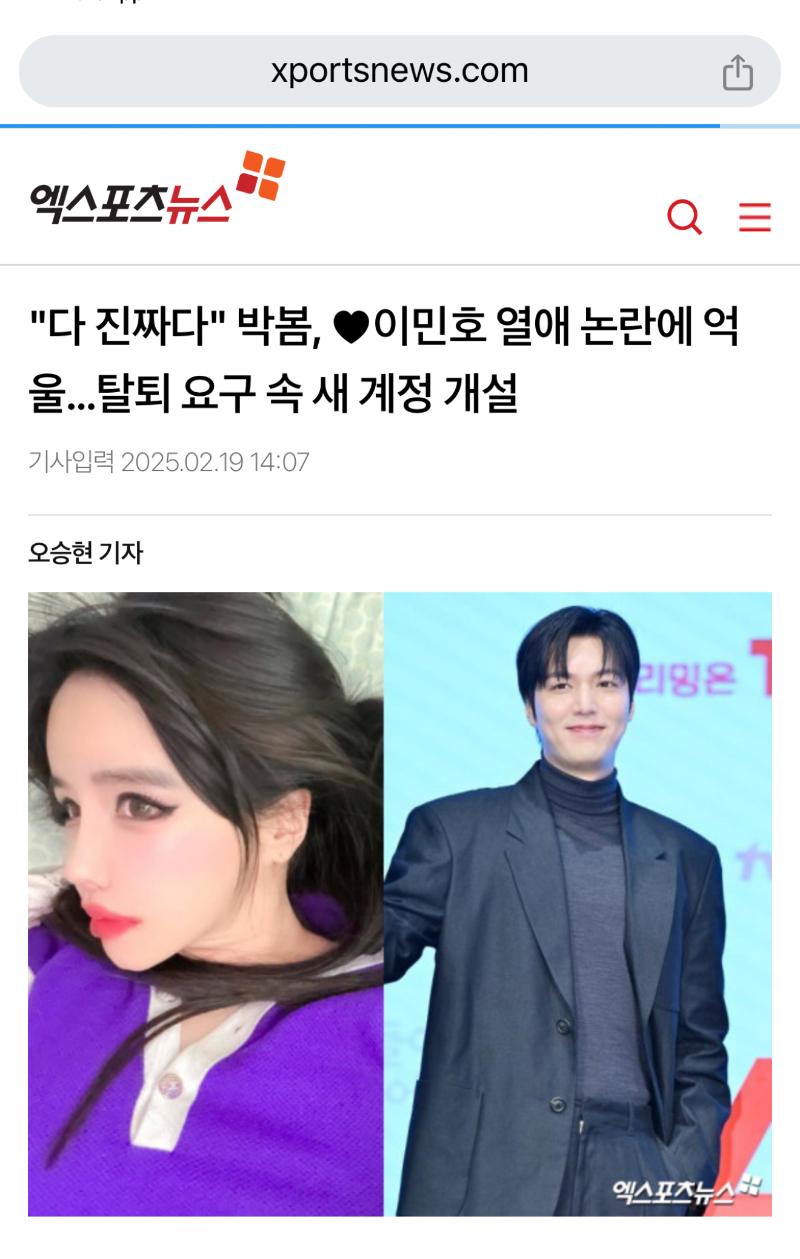 韓媒以「朴春“都是真的”對李敏鎬的戀愛爭議感到冤枉!在退團要求之下開了小號」為標題報導了這則新聞,目前公司沒有回應。