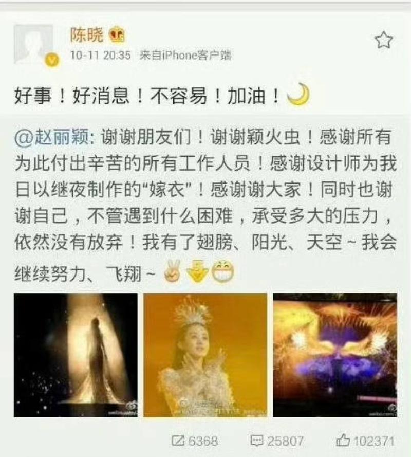 只不過最後陳曉突然和陳妍希結婚,當時陳妍希一度被傳是小三👇