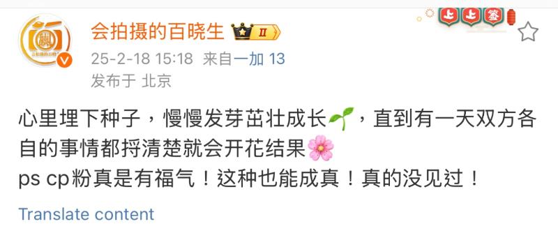 而另一個同團隊的狗仔,則發了一則指向十分明顯的貼文,表示:「CP粉真是有福氣!這種也能成真!真的沒見過」!