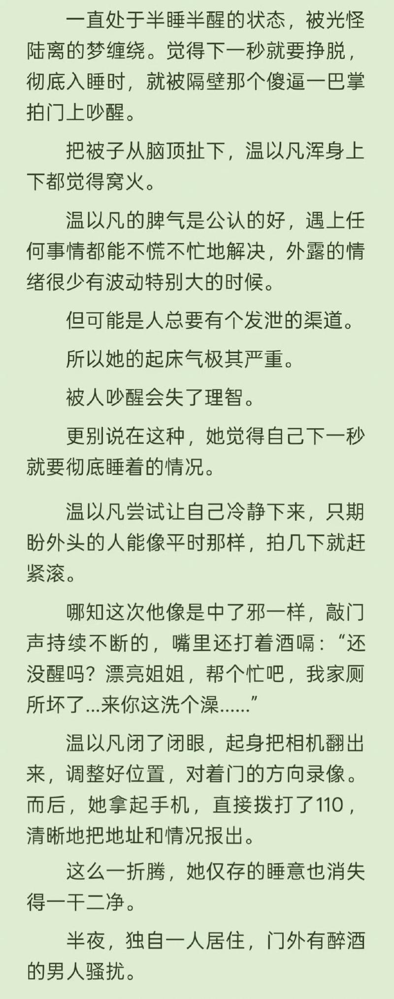 雖然但是,原著中實際上只出現過兩次,一次就是少年時期,另一次則是鄰居,而且只是嘴巴騷擾,但當時溫以凡直接報警處理,相當獨立有魄力👇