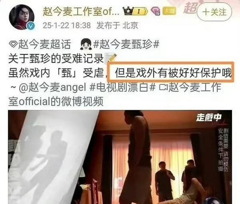 而趙今麥工作室也發文,說趙今麥劇外被保護的很好,現已刪博👇