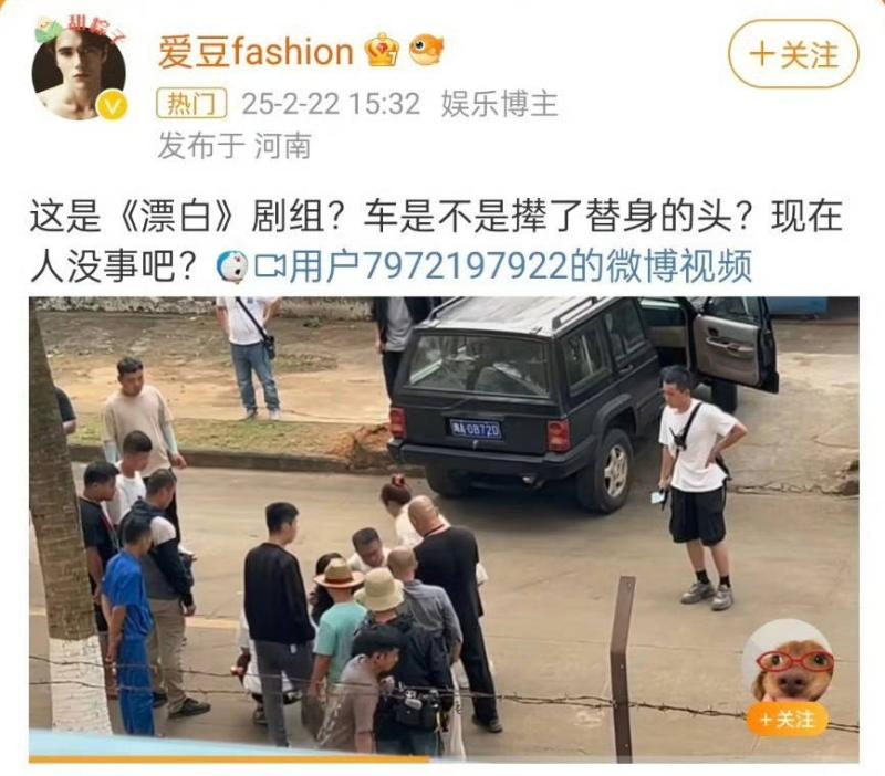 到底怎麼一回事?在原Po公開的視頻中,可以看見一輛加裝警燈的車輛,從道路盡頭駛入攝像頭拍攝的範圍,隨後壓過躺在地上的女演員頭部後方才停車,被碾壓的女演員尖叫痛哭不止,現場一片混亂。該博主提問:「這是《漂白》劇組?車是不是碾了替身的頭?現在人沒事吧?」