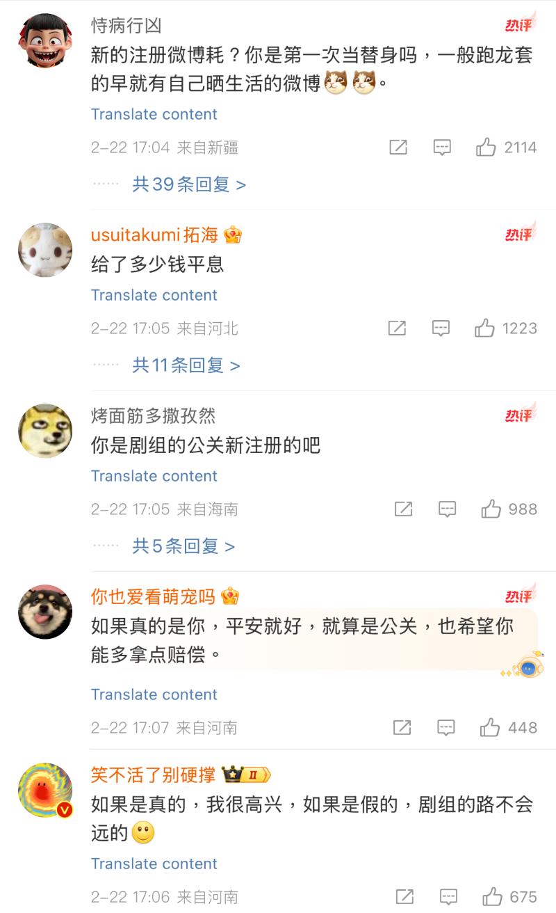 視頻一曝光,直接爆了熱搜,不少網友對於替身演員目前的狀況表示關心,隨後,有一名自稱是該替身演員的女孩發文,表示視頻拍攝角度問題,實際傷到的是胳膊,不是頭部,劇組第一時間送她去醫院:「目前也已經恢複正常生活。」