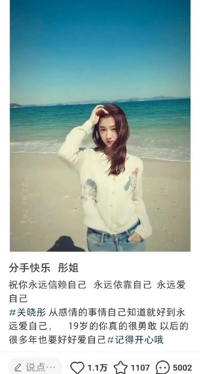 沒想到22號凌晨,就有網友發文祝福關曉彤分手快樂👇