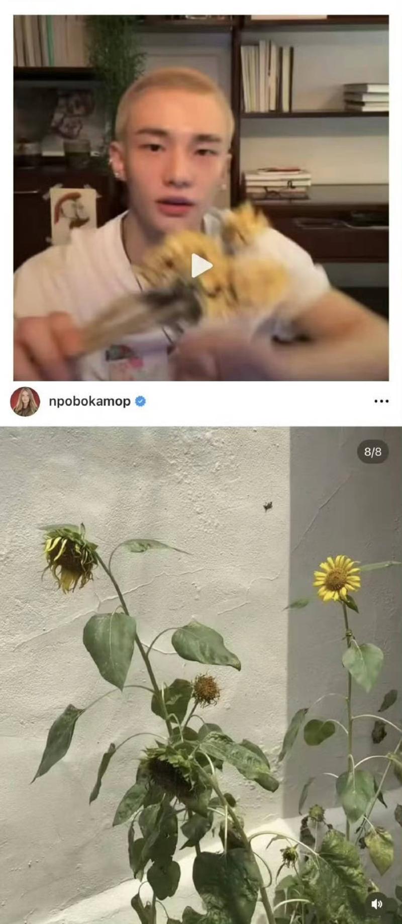 有什麼證據呢?當中包括女方曬出向日葵,黃鉉辰就拿著向日葵直播了👇