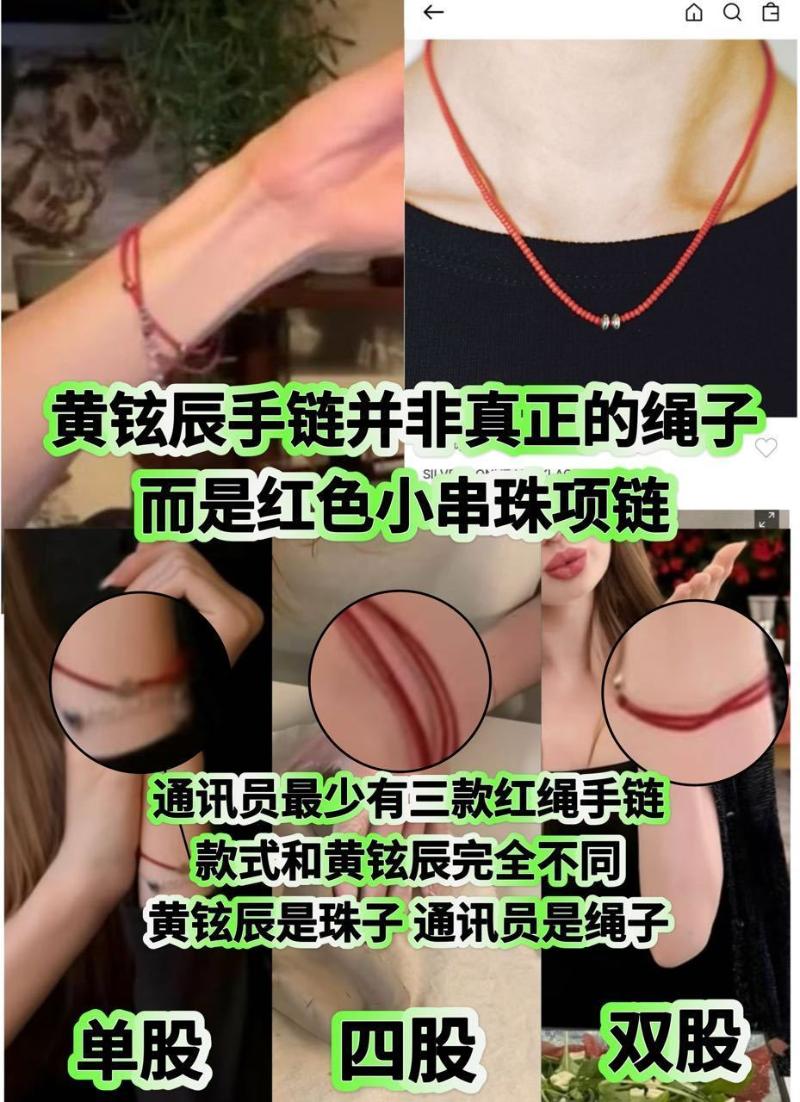 對於所謂的三個“同款”,戒指是品牌同款,至於所謂的紅繩手鏈,黃鉉辰的是紅色小串珠,而女方的則是紅繩手鏈👇