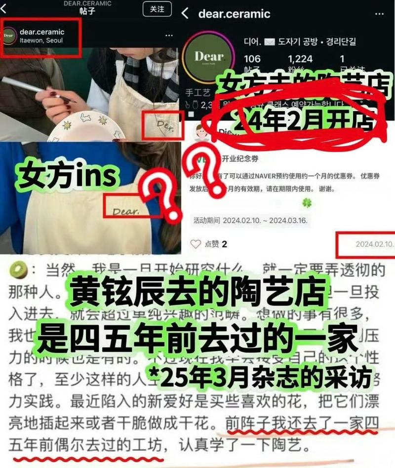 黃鉉辰去的陶瓷店,是5、6年前去過的;但女方去的陶瓷店,是2024年2月才開店的。