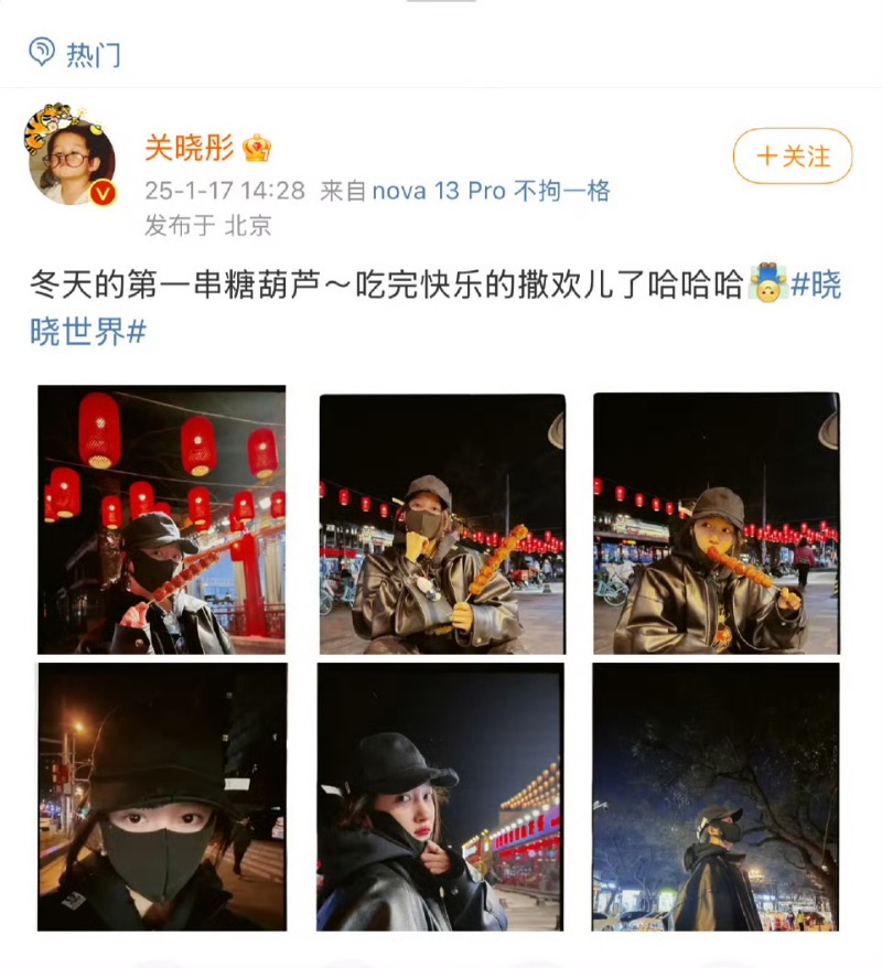 另外,網友表示關曉彤在過年前發的帖文,穿的衛衣和鹿晗的,也是情侶裝👇