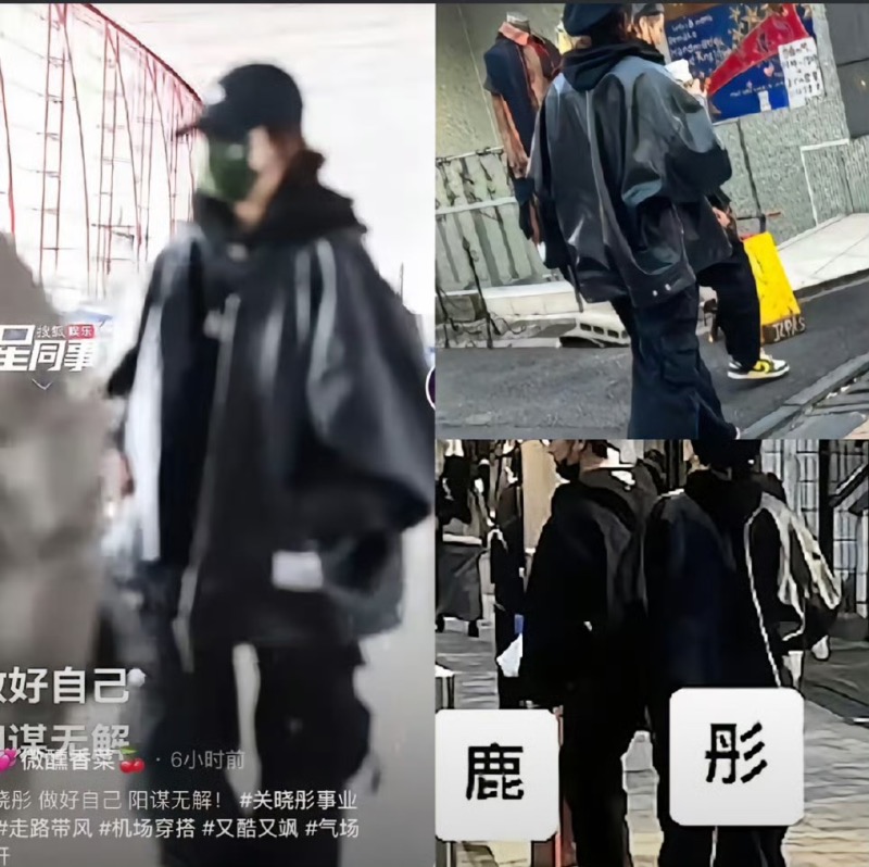 來看看,網友發現關曉彤在機場身穿的皮衣,和指和之前跟鹿晗同遊日本時穿的情侶皮衣是同一件!