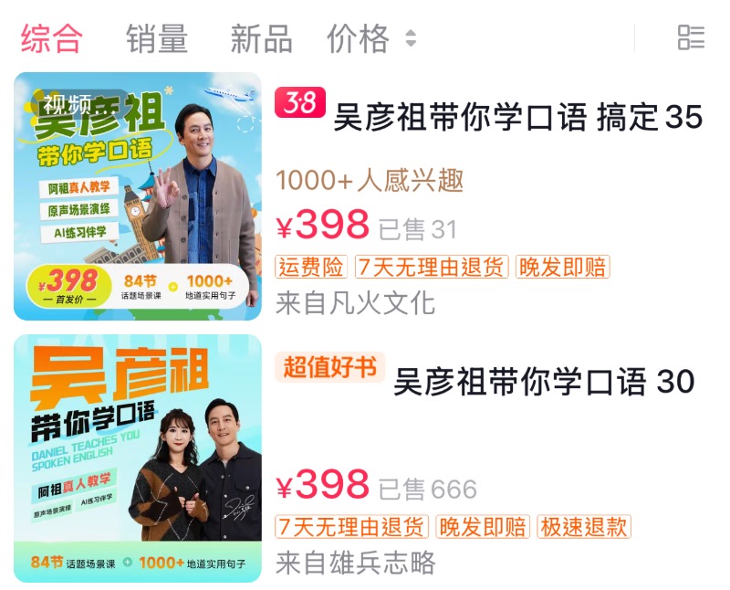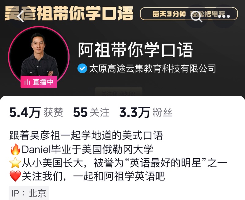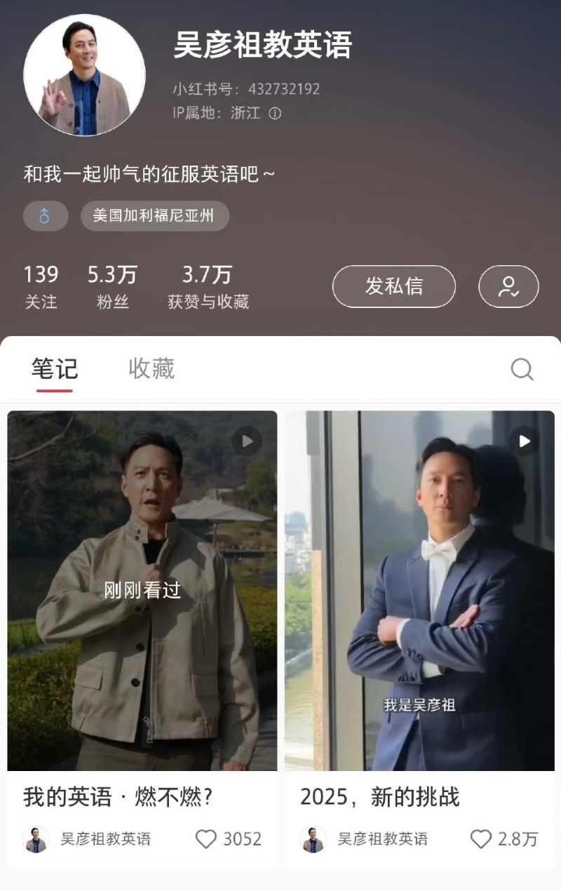 來看看,吳彥祖在社交平台開設的「吳彥祖教英語」帳號,發布了2條影片推薦其開設的英語課程,引發廣泛關注。
