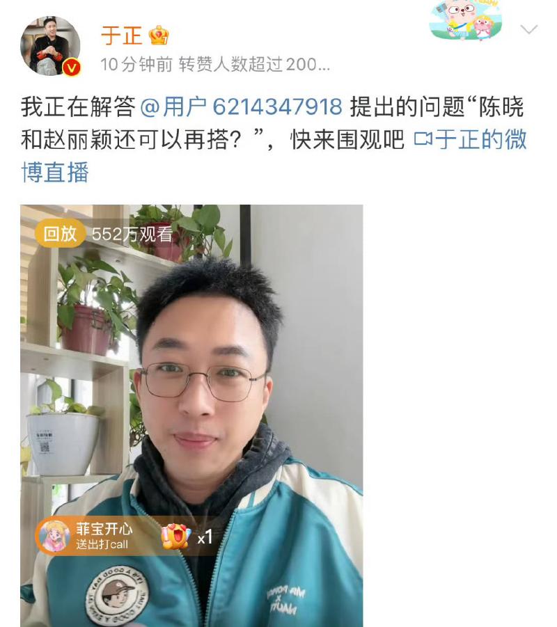離了大譜!于正開直播收費回應「陳曉&趙麗穎再搭」問題引熱議!本人回應!