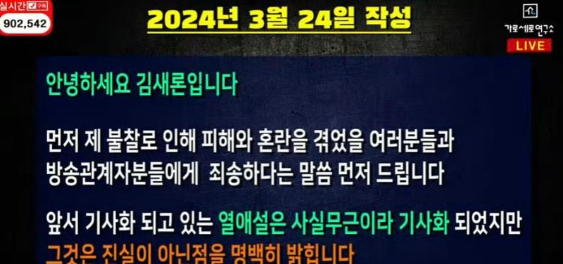 該記者公開了所謂的 「金賽綸“親自寫的”爆料 從15歲開始戀愛六年」,SNS文章如下:
