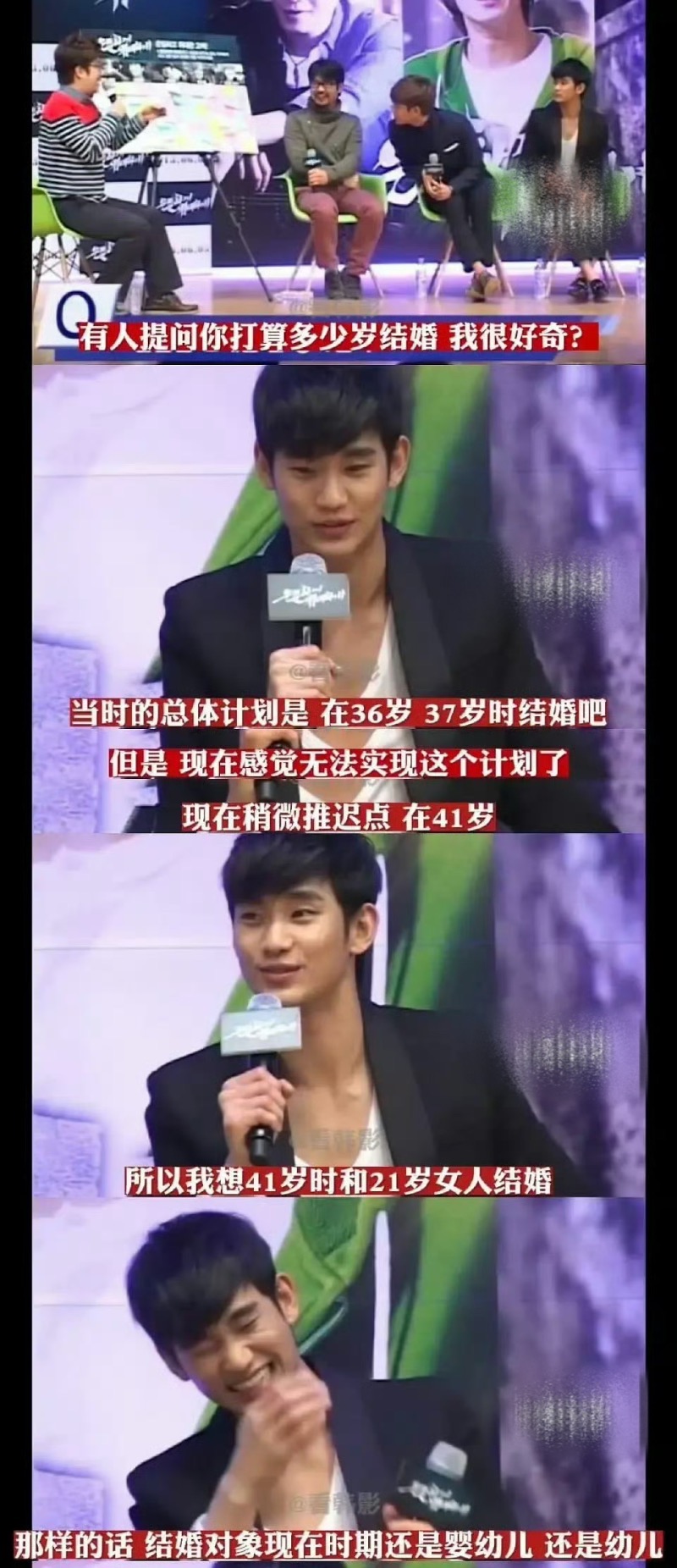 隨著熱議,網友再扒出金秀賢昔日言論,早在2013年接受訪問時,金秀賢就提及打算在41歲結婚,並表示希望娶比自己小20歲的女生當太太。