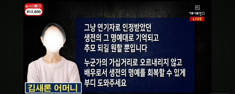 而金賽綸媽媽也首次在直播中發聲,表示自己什麼都不要,只是想要恢復金賽綸的名譽,並感謝元斌,因為當時他是第一個去拜祭金賽綸的藝人:「我不是為了得到什麽,也不想什麽挑起爭端。請幫我恢復賽綸生前的名譽。」👇