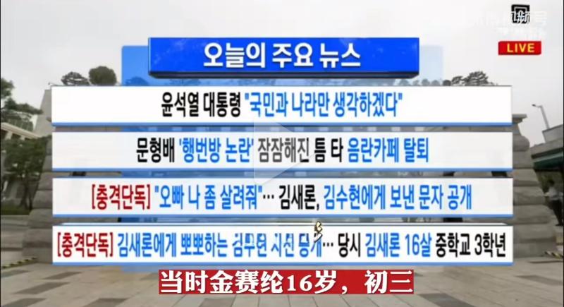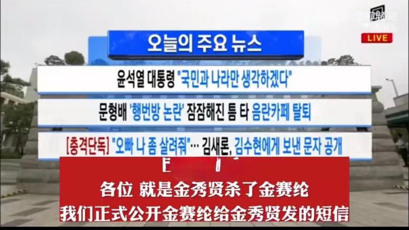 而在「橫豎研究所」直播中,直接喊話表示就是金秀賢殺了金賽綸,並公開了金賽綸發給金秀賢的簡訊!另外,他也公開了兩人親吻照的高清圖,並強調當時金賽綸只有16歲,反問網友是否會親吻16歲的女生?