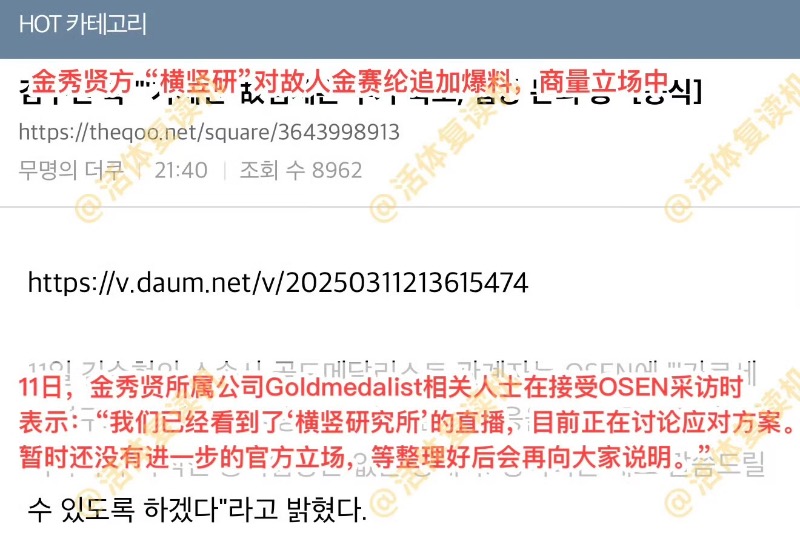 在橫豎研究所預告將進行「二次爆料」時,金秀賢方面堅定表示絕不退讓。不過隨著直播結束,整個韓網熱議之後,目前金秀賢方對韓媒表示,正在討論應對方案,暫時還沒有官方立場👇