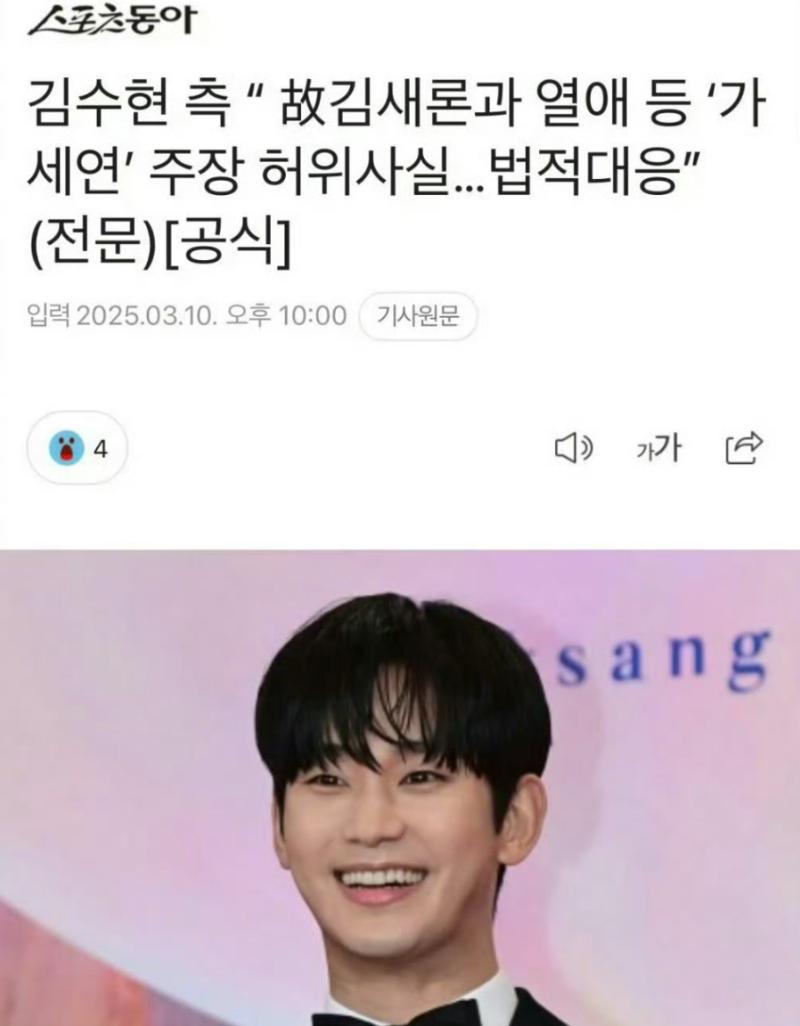 而經紀公司Gold Medalist也正式發佈了官方立場,對「橫豎研究所」提出的多項質疑表示:「與金秀賢相關的主張是明顯的虛假事實,我們正在考慮對橫豎研究所散布虛假事實的行為采取最強有力的法律應對措施。」表明了強硬立場。