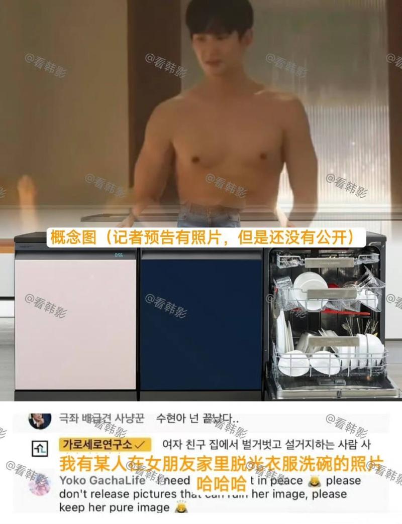 另外,直播中也公開爆料,金秀賢在曾經在女方面前脫了上衣做家務洗碗,說是不希望洗碗時被濺到衣服(⊙o⊙)…,當時金賽綸是未成年人,記者強調:「金秀賢如果不道歉,會公開這些沒穿衣服的洗碗照!」在直播中用了一張概念照,但公開了照片的一半,可以看見是在洗碗槽前~