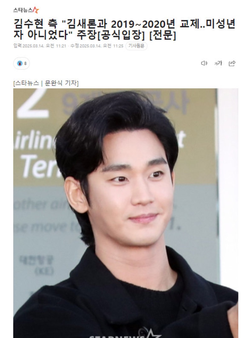 金秀賢所屬社方面表示,金秀賢是在金賽綸成年後的2019年夏天到2020年秋天與其交往的。金秀賢與未成年時的金賽綸交往的傳聞並不是事實。