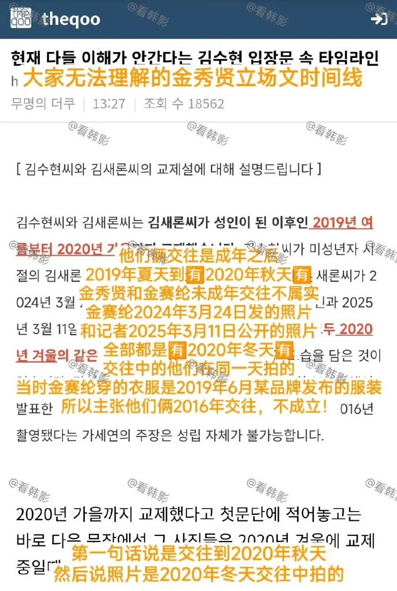 是噠,金秀賢在14號無預警發長文,認了和金賽綸戀人關係,但強調兩人是在2019年,也就是金賽綸成年之後才交往,並表示之前金賽綸公開的貼臉照,和橫豎研究所公開的照片,都分別是2019年和2020年拍攝的!