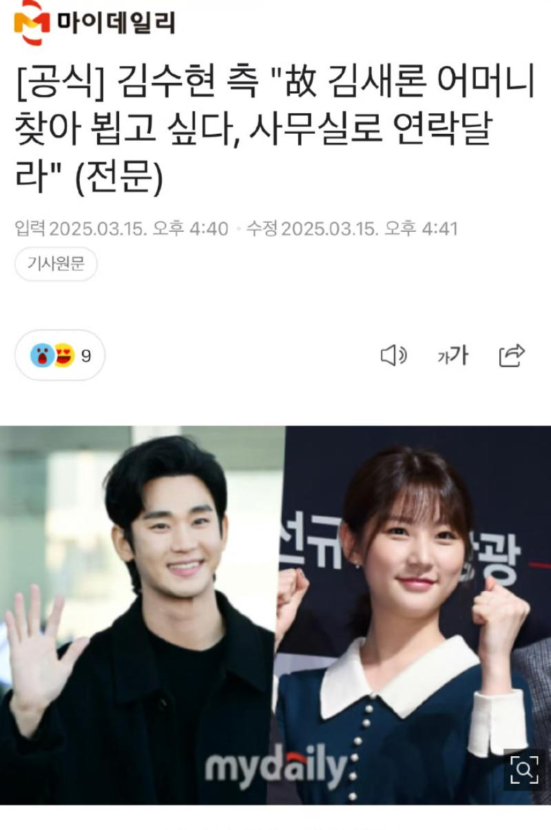 對於母親指出的關於故人的各種報道行為的部分,本公司深表同感。金秀賢先生也像本公司最近透露的立場文一樣,因橫豎研究所的報導而遭受傷害。