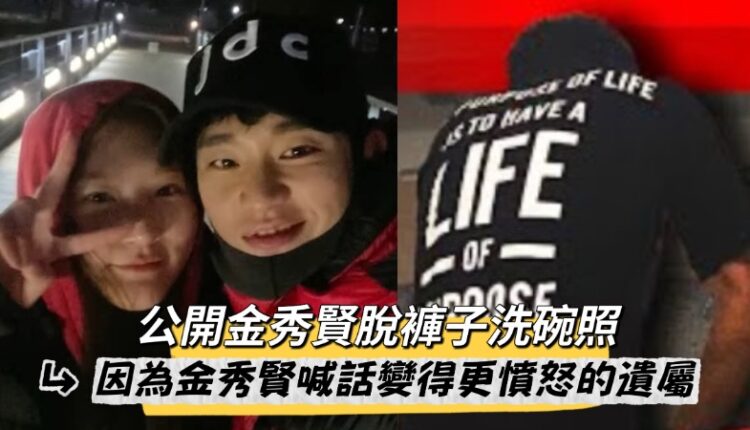 橫豎研究所表示遺屬看了金秀賢新立場文後,表示實在是無法容忍了,在獲得同意之後,公開了殺傷力最弱的一張洗碗照👇
