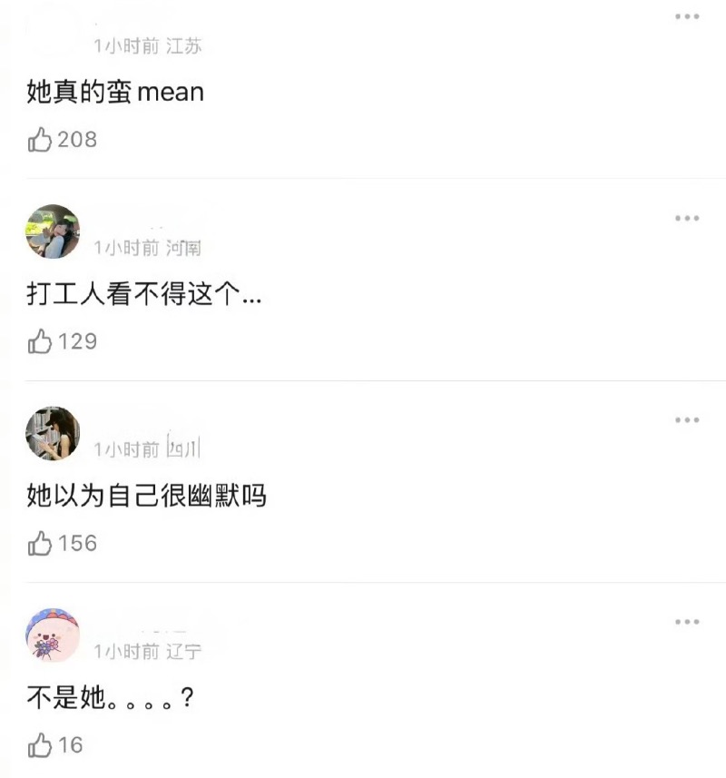 就是說,來看看網友熱評,都覺得她說話很mean,也很刻意👇