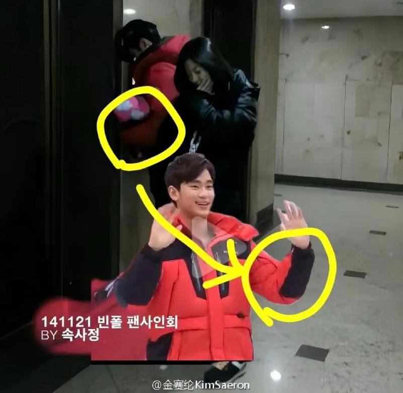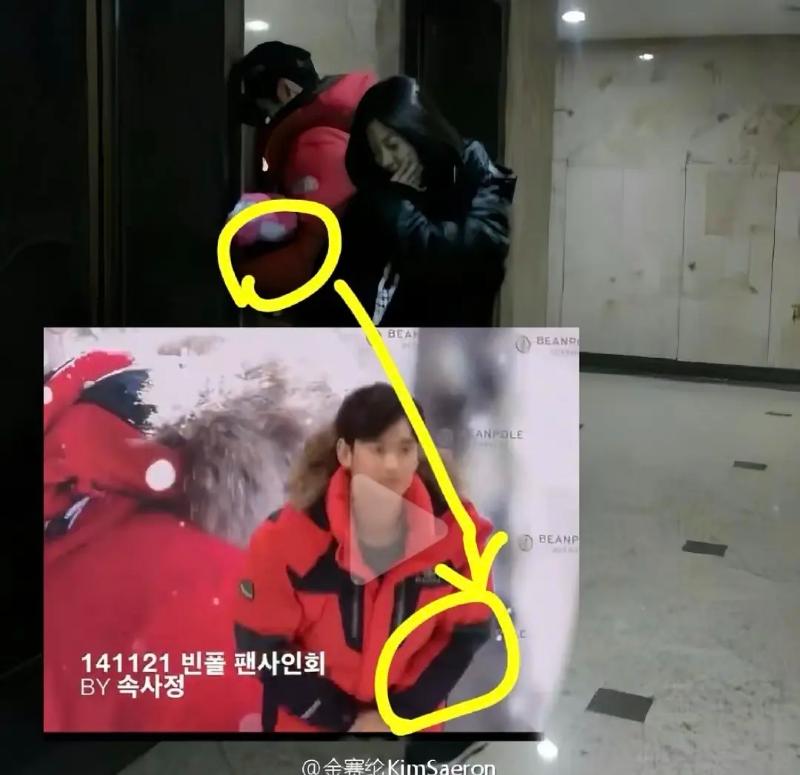 另外,網友扒出照片中疑似金秀賢的男人,身上穿的外套是其代言品牌2014年的款式👇