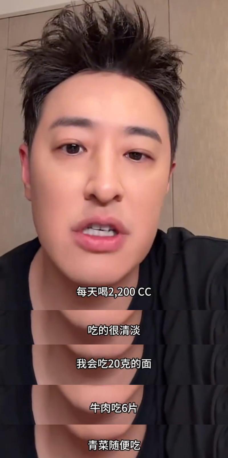 而在最新的直播中,他表示自己1個月裡面減了14斤(7kg),也很大方分享了自己變瘦秘訣,那就是每天喝2200ml的水,吃20克的麵,6片牛肉,吃得很清淡,多吃蔬菜。他表示之前主要吃太油了,稍微控制一下就很好!